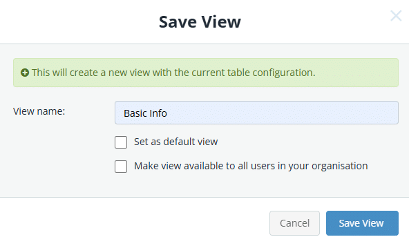 - (Optional) To make this view available to all users, enable Make available to all users in organisation.