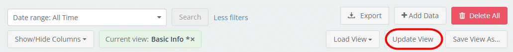 If you make changes to the current loaded view, you will see an asterisk appear on the green Current View tag that indicates unsaved changes.