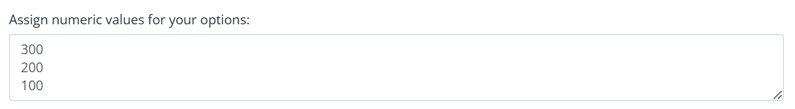 - In the Assign numeric values for your options field, enter the values of each choice in the same order as they are listed.