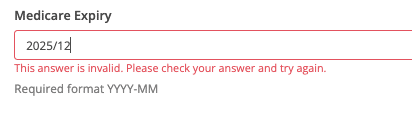 MediRecords requires the Medicare card expiry date to be entered in the YYYY-MM format.