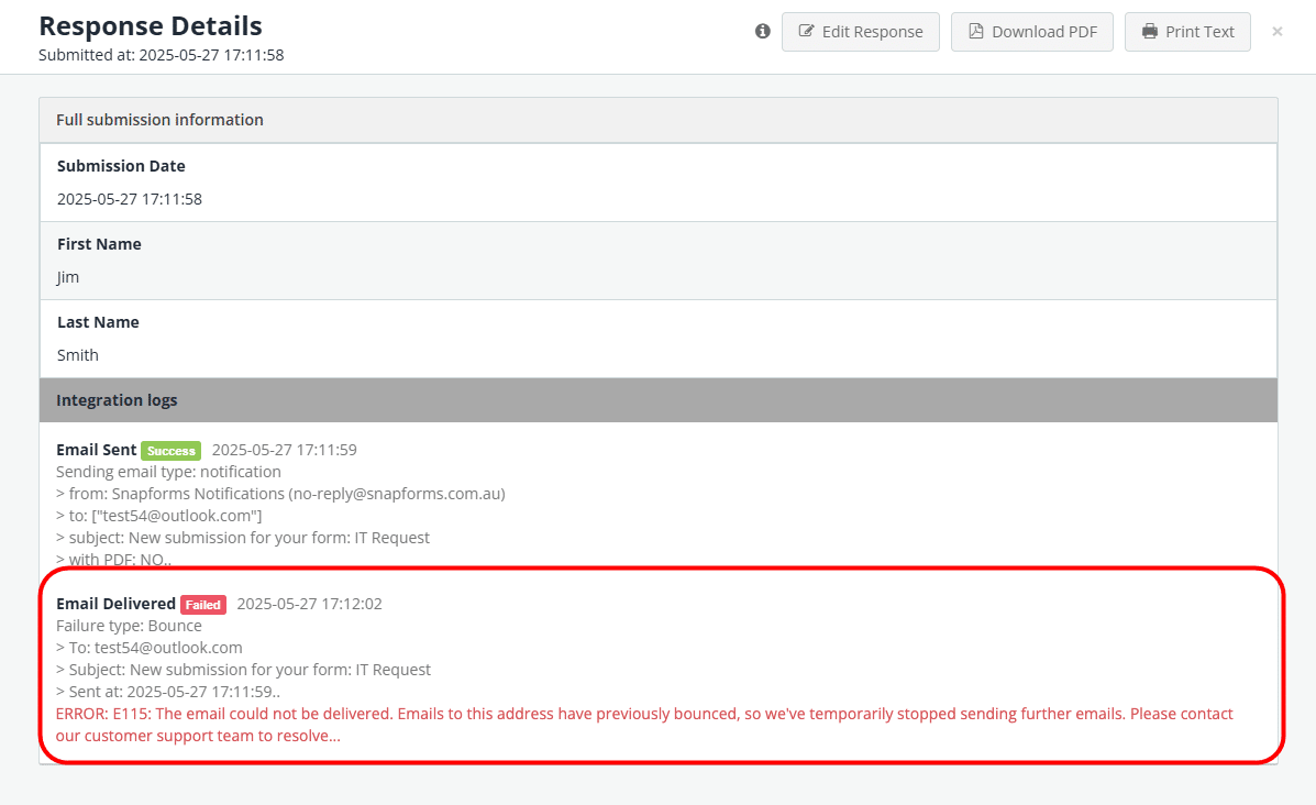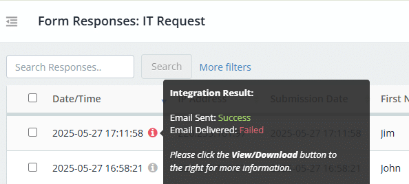 If you’re not receiving email notifications, you can check the delivery status via the Form Responses list: